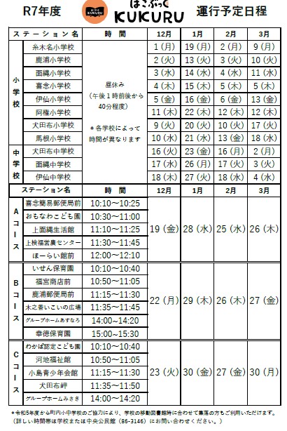R7年12月~R8年3月の巡回の日程は以下の通りです。